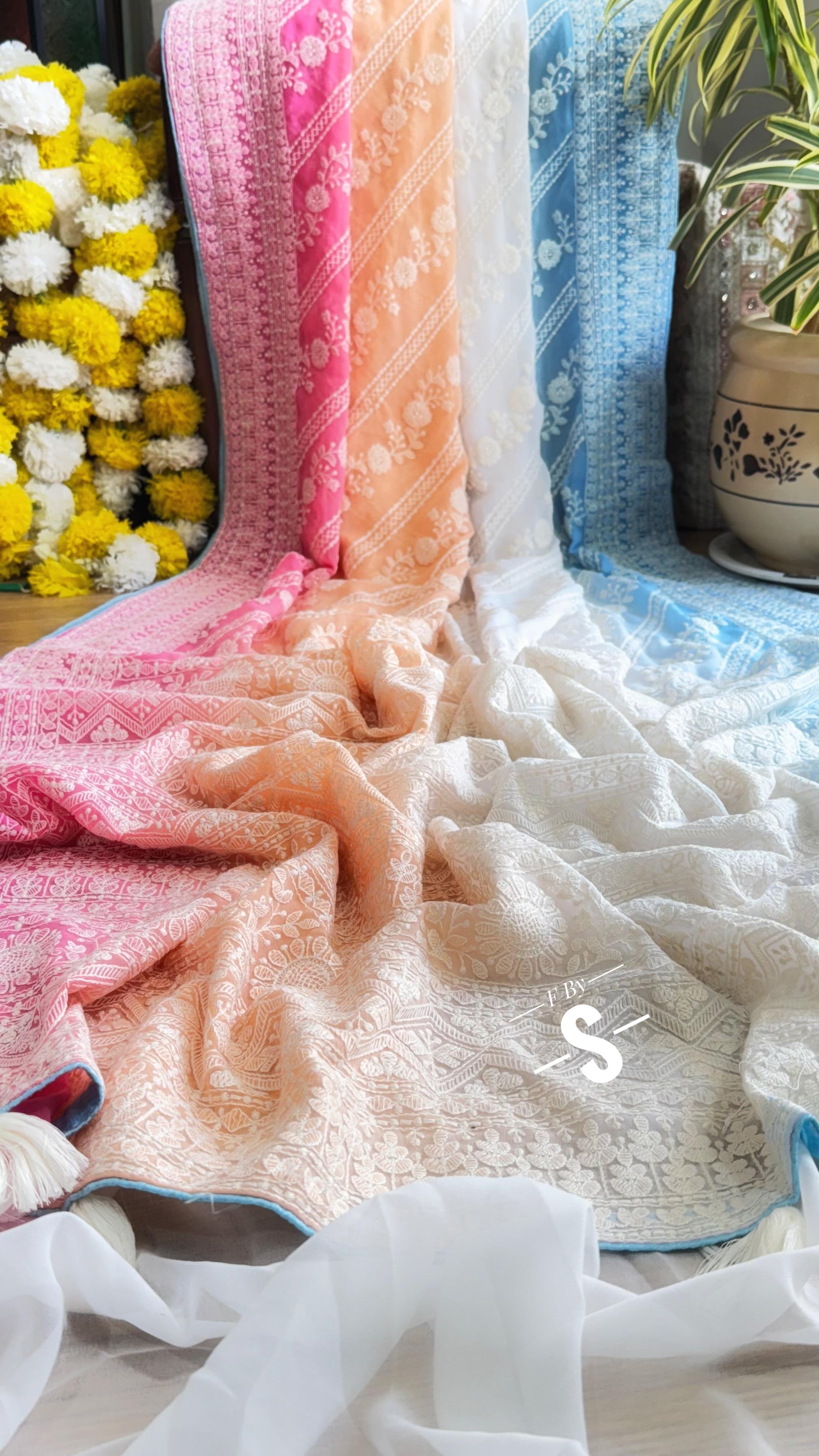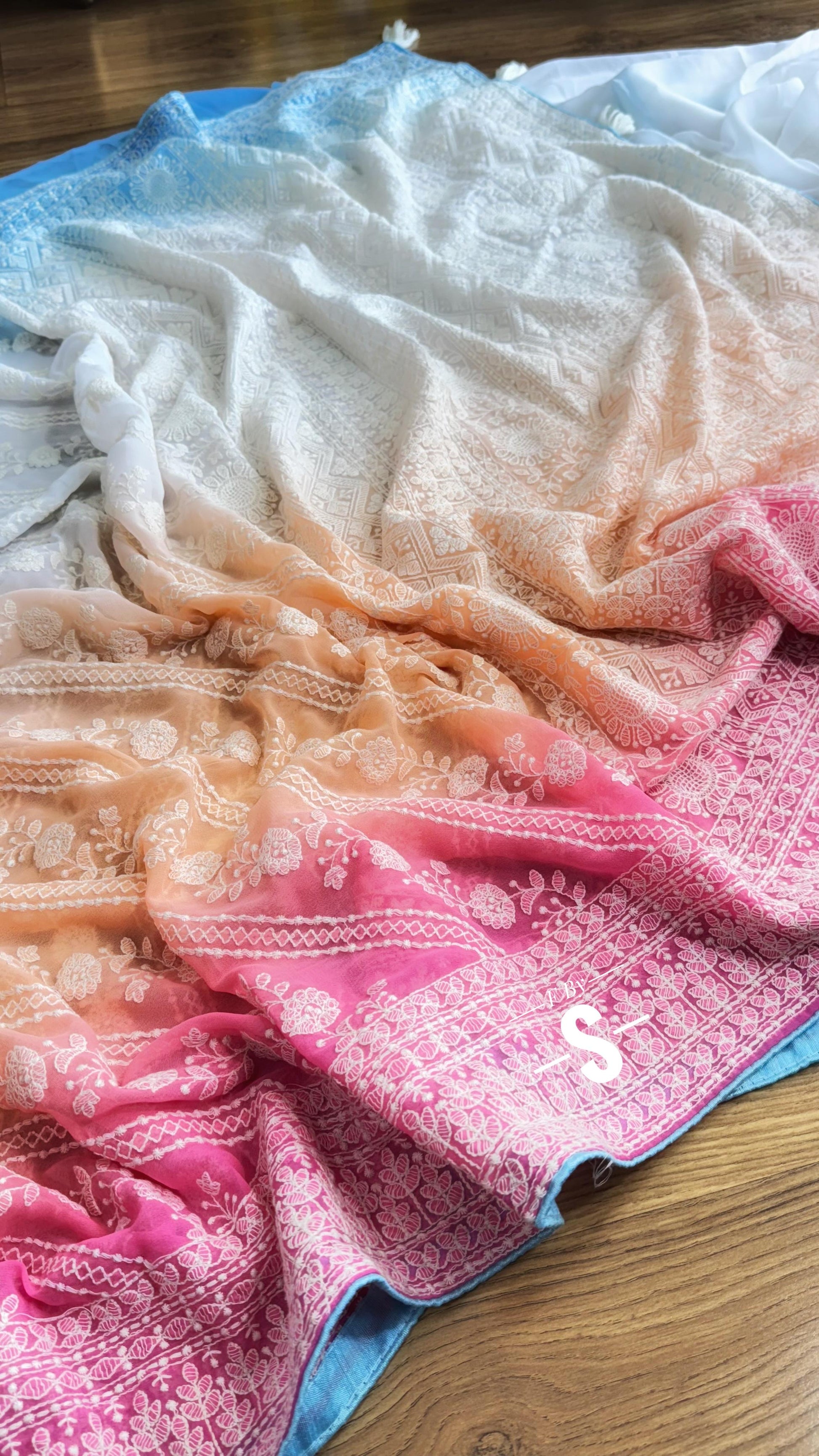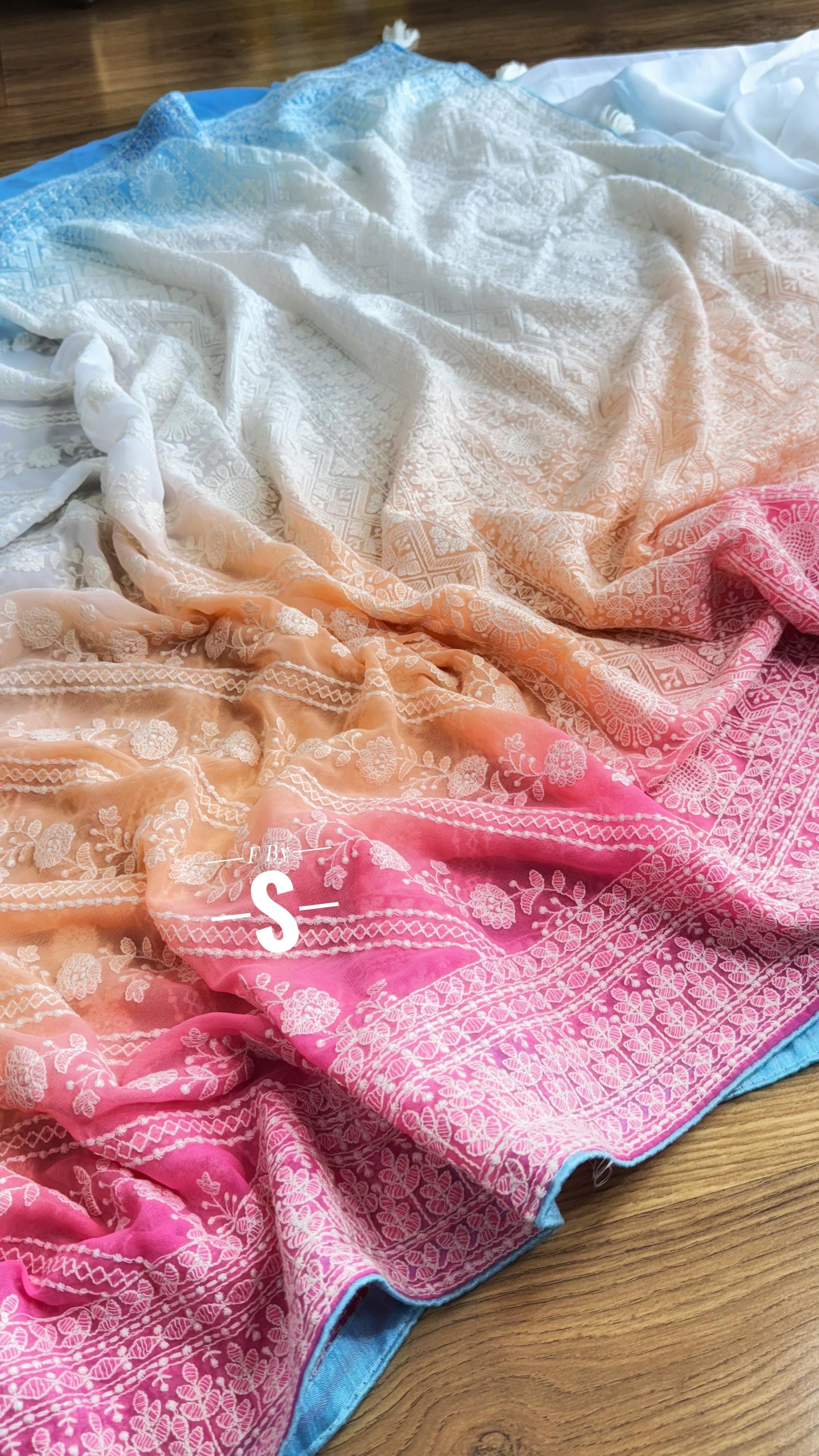 3D COLOR PURE GEORGETTE WITH CHIKANKARI SAREE