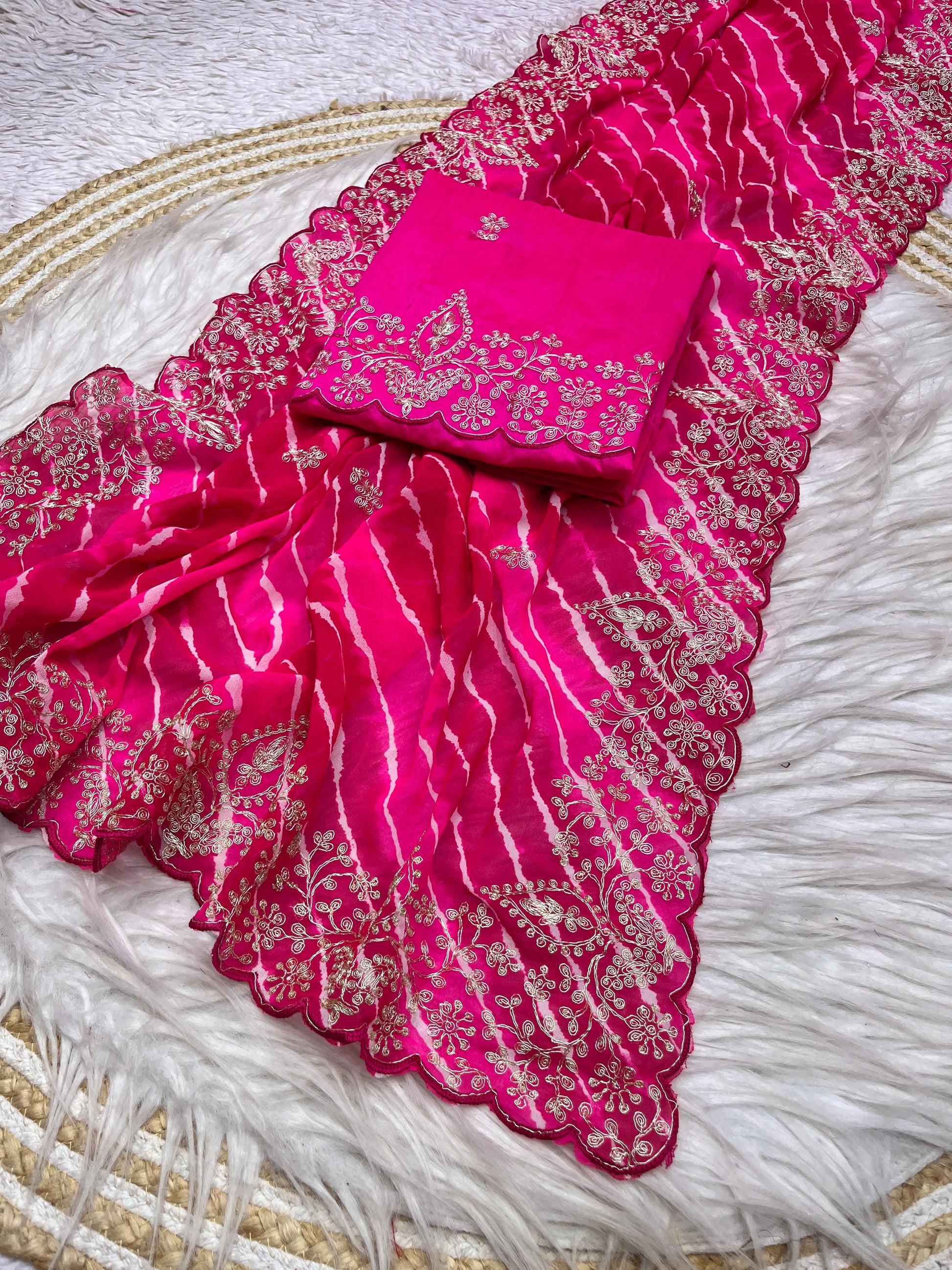 Fabric & work :- soft c*c prism lehriya with c-pallu pittawork & butti in whole saree with rich look cutwork border